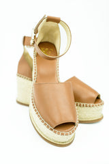 Step Up your shoe collection with the Gladious wedge espadrille. These chunky pair features a natural jute trim with a shimmery gold sole and a comfortable ankle strap. Cushioned and reinforced on the interior for extra comfort.